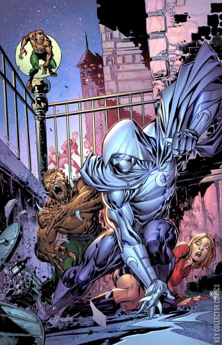 THE MISSION I AM MOON KNIGHT! The mysterious Mr. Knight has opened his Midnight Mission, his people petitioning for protection from the weird and horrible. The Moon Knight stalks the rooftops and alleys marked with his crescent moon tag, bringing violence to any who would harm his people. Marc Spector, in whichever guise he dons, is back on the streets, a renegade priest of an unworthy god. But while Khonshu languishes in a prison that Moon Knight put him in, Moon Knight must still observe his duty: protecting those who travel at night. Let it be known—Moon Knight will keep the faith. LEGACY #201