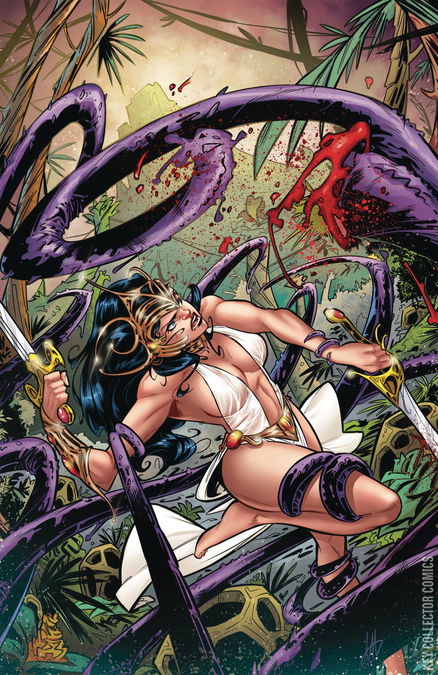 Nah-ee-lah's trials continue as she fights her way through a catacomb filled with creatures and terrors. Deep inside the hidden subterranean world of the Moon the fight for survival is fierce and fraught with dangers around every corner. The Moon Maid delivers a wonderful mix of action and horror that will transport your imagination to the vivid worlds of Edgar Rice Burroughs. The Moon Maid: Catacombs of the Moon #2 comes with three covers - Main by Alex Miracolo, Fury of the Moon Maid by Puis Calzada (Hatchet), and 350-copy limited-edition Virgin Art cover also by Sparacio.