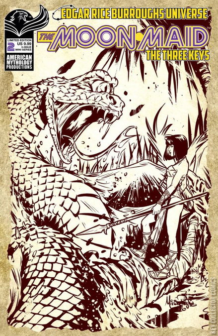 American Mythology's updating of the classic Moon Maid character continues, in an all-new tale featuring an all-new Moon Maid, declared by Edgar Rice Burroughs, Inc. as a canonical and official sequel to the original novel! Loh-ee-nah's home inside a vast crater amid the jungles that line the inner surface of Earth's moon now hosts a band of humanoid creatures called the Va-gas, but welcoming the cannibalistic creatures into her sanctuary might have been an enormous mistake. The ancient, abandoned city that Loh-ee-nah protects with her life possesses a startling secret, but while she attempts to broker peace with the horse-like beings, the warlike Kalkars who originally destroyed Groethe have returned, and spell certain death for all within the ruins! Fantastic creatures, alien cultures, and slashing swords abound in a tale that combines classic pulp thrills with modern sensibilities and themes, not to be missed! Available with two covers - Main & 1/300 Ltd Ed Pulp by Miriana Puglia.
