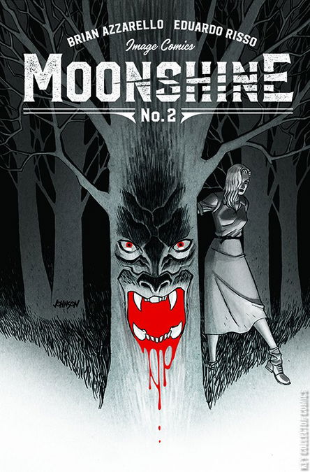 "MOONSHINE," Part Two Gangster Lou Pirlo thought he was stepping up in the NYC mob when he got sent to Appalachia to broker a big moonshine deal. Instead, he stepped right in the middle of a good ol' fashioned family feud...and when one of the family might be a werewolf, things get bloody right quick. Continuing the new series from the legendary creators of 100 Bullets!