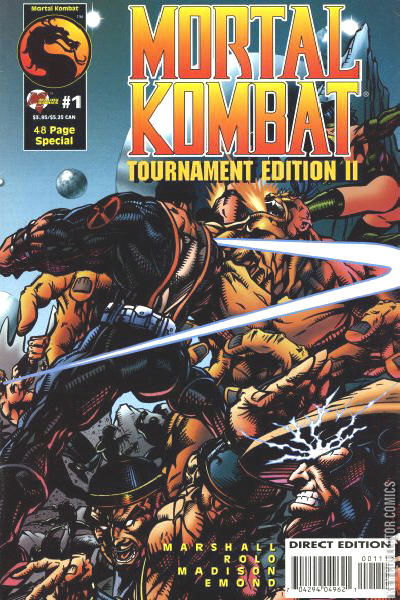 The shocking conclusion of the Mortal Kombat: Battlewave storyline (see Mortal Kombat Battlewave (1995) #1-6) features the death of one of the main MK kombatants. No hoax, no joke...there's definitely some fatality action going on here. This 40-page monster's got everything, including exciting, all out teeth-kicking story and art featuring both MK1 and MK2 characters. Plus, there are enticing hints about the Mortal Kombat 3 arcade game. It's the Mortal Kombat event of the year!