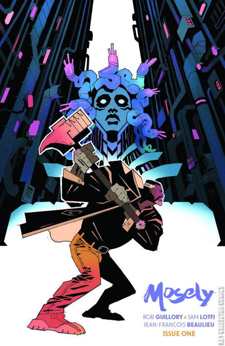 From Farmhand creator Rob Guillory and Sam Lotfi (Harley Quinn), Mosely is a satirical sci-fi blockbuster perfect for fans of God Country and Ghost Cage! In the hyper-technological world of the later 21st century, Mosely is a bitter old janitor on a mission from a higher power-to unleash holy Hell upon the 'too big to fail' Tech Gods. Can one man bring down the corporate powers who've used their vast influence to oppress an all too complacent human race (and hopefully win back the favor of his estranged family while he's at it)? Mosely's taking up the Holy Hammer and you better believe he's gonna smash some $h!t until he sets mankind free! Each issue has wall to wall content, and will feature a bonus story by series writer Rob Guillory starting with issue #2!