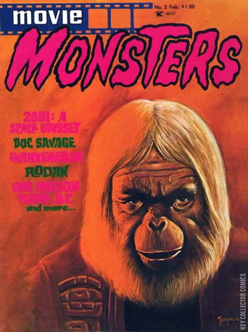 Articles on horror films illustrated with movie stills, similar to Famous Monsters of Filmland. Articles also on the Planet of the Apes, Ray Harryhausens One Million Years B.C. (featuring Raquel Welch in a fur bikini), the Doc Savage movie, Hammer Films Frankenstein vs. the Universal Pictures version, Rodan, Stanley Kubricks 2001: A Space Odyssey.