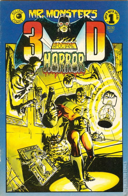 Stories and art by Michael T. Gilbert, Bob Powell and Joe Kubert, with 3-D effects by Ray Zone. Cover by Michael T. Gilbert. 3-D Mr. Monster stories and reprints of classic 3-D stories from the golden age of horror comics. Picture of Evil; The Damned; The Blind, the Doomed and the Dead. Includes an introduction by Gilbert. Sometimes listed as Mr. Monsters Super Duper Special #1. 32 pages, Full Color with 3-D effects.