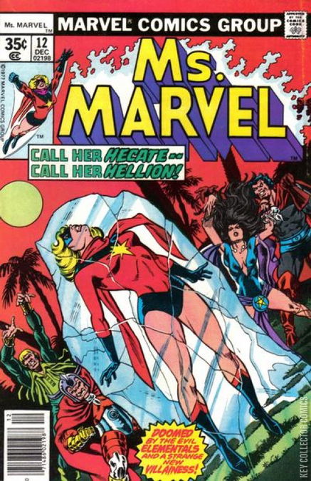 Ms. Marvel battles the Elementals alongside Hecate! Can the pair retrieve the dangerous ruby scarab before the Elementals use it to destroy Cape Canaveral?!