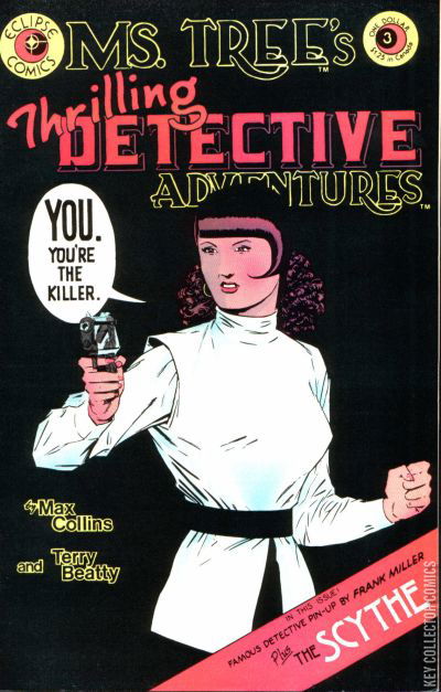 “Death Do Us Part”: Chapter 6 : My Cold, Dead Fingers and Chapter 7: In The Final Analysis. Also, “Mike Mist 2-Minute Mist-ery”: Crime Takes A Hike; “The Scythe”; and Frank Miller’s “Famous Detective Pin-Up” No. 3: The Continental Op.