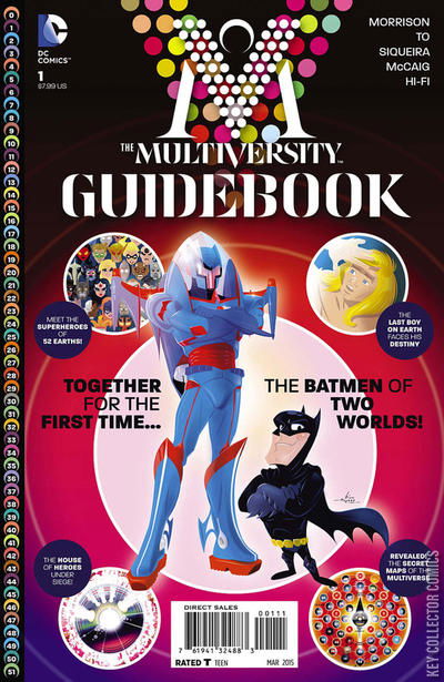THE GUIDEBOOK TO THE GREATEST ADVENTURE IN DC’S HISTORY IS HERE! With a detailed concordance featuring each of the 52 worlds in the Multiverse, a complete history of DC Comics’ universe-shattering “Crisis” events, a map of all known existence, AND an action-packed dual adventure starring Kamandi of Earth-51 alongside the post-apocalyptic Atomic Knight Batman of Earth-17 and chibi Batman of Earth-42, this 80-page mountain of MULTIVERSITY madness cannot be missed! The MULTIVERSITY GUIDEBOOK contains everything you ever wanted to know about DC’s parallel worlds and their super-heroic inhabitants. Meet the Agents of W.O.N.D.E.R. The Light Brigade, the Super-Americans and the Love Syndicate! Meet the Accelerated Man, Aquaflash, BiOmac and more! Overflowing with today’s top artists and completely written by Grant Morrison himself, readers of the DC Universe can’t afford to pass up this oversized, sixth chapter of MULTIVERSITY!