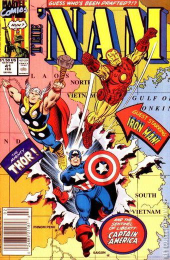 Ice's disgust over what's happening in Vietnam sets the stage for one of the most unusual, poignant 'NAM tales yet! In a war filled with so many villains, Ice needs not just a hero— he needs a super hero, and lots of 'em! So enter Iron Man, Thor, and Captain America!