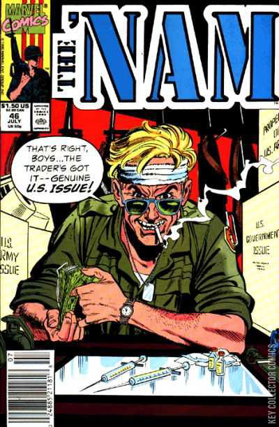 Home / Marvel / Nam, The / Nam, The #46 Marvel Released July 1990 Nam, The #46 Add to Collection Want It Synopsis "On the Clock" Add to Collection Buy it on eBay Buy on eBay Low $1 Mid $2 High $3 Synopsis "On the Clock" Details Series Nam, The Cover Date July 1990 Pages N/A UPC N/A Cover Price $1.50 Final Order Cutoff N/A Creators Writer Chuck Dixon Artist Wayne Vansant Price Guide Log in or subscribe to access detailed graded price information and market insights. Log In Subscribe