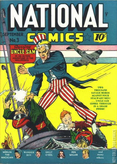 A collection of comics and stories, including "Yiffendi Invades the Phillipines" , featuring Uncle Sam : Uncle Sam steps in to aid the Philippines against an expansionist power of Mias and his brute of a general, Yiffendi, rallying the locals to take back their land. -- Plus : Prop Powers, Kid Dixon, Merlin the Magician, Wonder Boy, and more!!