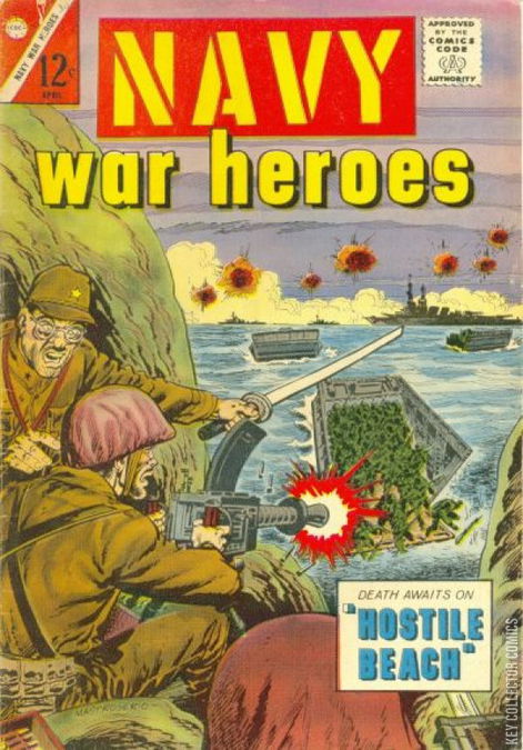 0. Cover drawn by Rocco Mastroserio. 1. The Hero of Midway (written by Joe Gill? Penciled by Charles Nicholas? Inked by Ernie Bache). 2. Hostile Beach (written by Joe Gill? Penciled by Bill Molno, inked by Vince Alascia). 3. Remember Pearl Harbor (short story / written by Joe Gill? Penciled by Bill Molno? Inked by Vince Alascia?). 4. U-Boat Rendezvous (written by Joe Gill? Penciled by Bill Molno, inked by Vince Alascia). 5. Heroes of the Lawrence (text story). 6. Captain Jinx (written by Joe Gill? Penciled by Charles Nicholas, inked by Jon D'Agostino). 7. The First Amphibious Victory (short story / written by Joe Gill? Penciled by Charles Nicholas).