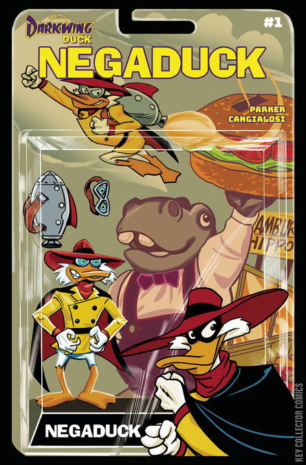 'I am the screeching fingernail on the chalkboard of justice. I am the sour ball in the candy jar of goodness. I am NEGADUCK!' He's the exact opposite of DD in every way� evil, nefarious, dedicated to stealing lollipops from kids and not helping grandmas across the street! And now, he's ready to begin a reign of crime and terror the likes of which St. Canard has never seen - except� dang it, all of the other villains are ripping off his ideas! What's a criminal mastermind to do when the city's thick with other criminals, stealing his shine? Why, take his villainy on the road, of course! Written with fiendish glee by arch-author JEFF PARKER and illustrated by the suspiciously talented CIRO CANGIALOSI, Negaduck features a regular rogues' gallery of cover artists, including JOSHUA MIDDLETON, JAE LEE, TRISH FORSTNER, and a special Whiteout homage cover by that series' co-creator, STEVE LIEBER!