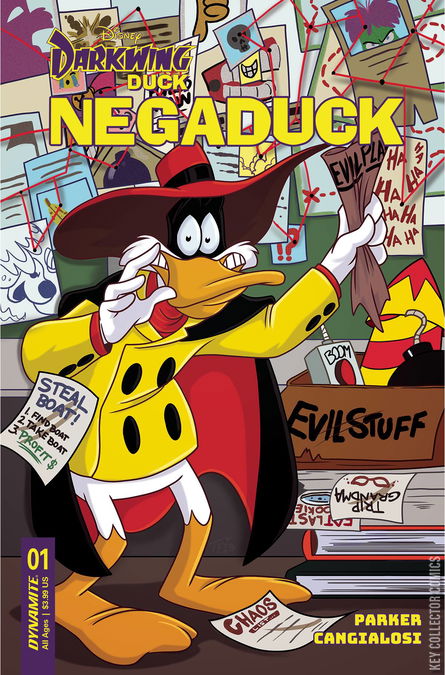 'I am the screeching fingernail on the chalkboard of justice. I am the sour ball in the candy jar of goodness. I am NEGADUCK!' He's the exact opposite of DD in every way� evil, nefarious, dedicated to stealing lollipops from kids and not helping grandmas across the street! And now, he's ready to begin a reign of crime and terror the likes of which St. Canard has never seen - except� dang it, all of the other villains are ripping off his ideas! What's a criminal mastermind to do when the city's thick with other criminals, stealing his shine? Why, take his villainy on the road, of course! Written with fiendish glee by arch-author JEFF PARKER and illustrated by the suspiciously talented CIRO CANGIALOSI, Negaduck features a regular rogues' gallery of cover artists, including JOSHUA MIDDLETON, JAE LEE, TRISH FORSTNER, and a special Whiteout homage cover by that series' co-creator, STEVE LIEBER!