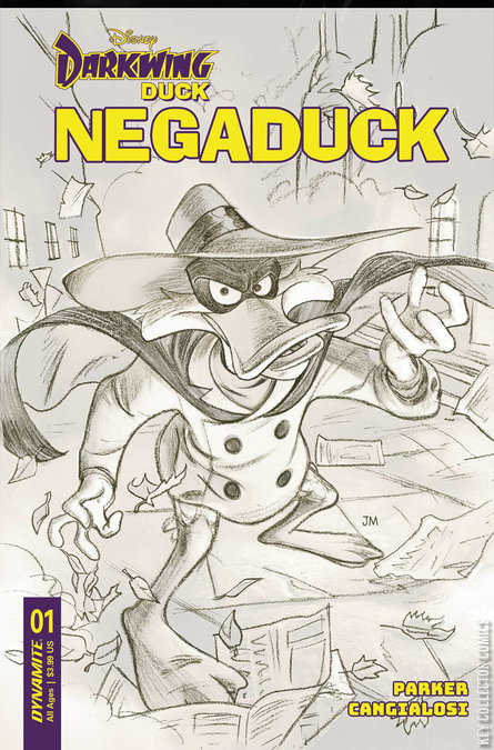 'I am the screeching fingernail on the chalkboard of justice. I am the sour ball in the candy jar of goodness. I am NEGADUCK!' He's the exact opposite of DD in every way� evil, nefarious, dedicated to stealing lollipops from kids and not helping grandmas across the street! And now, he's ready to begin a reign of crime and terror the likes of which St. Canard has never seen - except� dang it, all of the other villains are ripping off his ideas! What's a criminal mastermind to do when the city's thick with other criminals, stealing his shine? Why, take his villainy on the road, of course! Written with fiendish glee by arch-author JEFF PARKER and illustrated by the suspiciously talented CIRO CANGIALOSI, Negaduck features a regular rogues' gallery of cover artists, including JOSHUA MIDDLETON, JAE LEE, TRISH FORSTNER, and a special Whiteout homage cover by that series' co-creator, STEVE LIEBER!