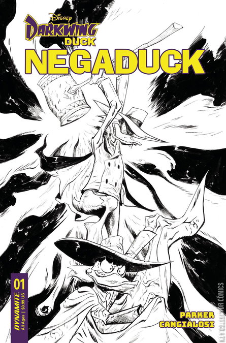 'I am the screeching fingernail on the chalkboard of justice. I am the sour ball in the candy jar of goodness. I am NEGADUCK!' He's the exact opposite of DD in every way� evil, nefarious, dedicated to stealing lollipops from kids and not helping grandmas across the street! And now, he's ready to begin a reign of crime and terror the likes of which St. Canard has never seen - except� dang it, all of the other villains are ripping off his ideas! What's a criminal mastermind to do when the city's thick with other criminals, stealing his shine? Why, take his villainy on the road, of course! Written with fiendish glee by arch-author JEFF PARKER and illustrated by the suspiciously talented CIRO CANGIALOSI, Negaduck features a regular rogues' gallery of cover artists, including JOSHUA MIDDLETON, JAE LEE, TRISH FORSTNER, and a special Whiteout homage cover by that series' co-creator, STEVE LIEBER!