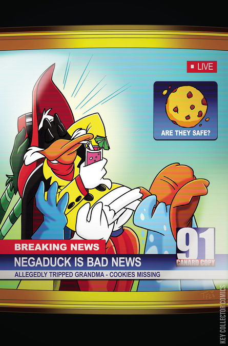 The Supervillain With the Midas Touch! The rest of The Fearsome Five tremble in awe at their leader, who now wields a glove with the power to turn anything he touches into gold! Negaduck, of course, uses these stolen powers with all of the wisdom and responsibility you'd expect from the most evil villain in multiple universes. Glittering talents JEFF PARKER and CIRO CANGIALOSI are further enriched by 24-karat cover artists JAE LEE, DREW MOSS, and TRISH FORSTNER to make this treasure trove of a title truly sparkle!