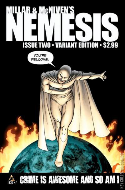 The most talked about new series of 2010 rages on! Nemesis's tour of terror hits Washington D.C. and hits it hard. That doesn't bode well for the citizens of the nation's capital or the man in the house on Pennsylvania Ave. Luckily, the Chief of Police has an idea on how to stop the super-villain-- but can you stop a one man hurricane of violence and mayhem? All this, thanks to the creative team that brought you CIVIL WAR- Mark Millar and Steve McNiven.