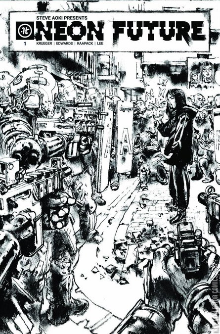 In a future where technology is illegal, a war is brewing between the Augmented, who have chosen to integrate technology into their bodies, and the Authentic, who have not. The resistance movement, Neon Future, strives to bring peace by showing the world a brighter future in harmony with technology. But when Authentic hero and TV Star Clay Campbell dies unexpectedly, Neon Future’s mysterious leader Kita Sovee (inspired by Steve Aoki) is forced to decide whether to use his latest technological innovation to bring Clay back from the dead. This choice threatens to tip the uneasy balance between the government and the techno-class into an all-out civil war. From Eisner Award-Winning Jim Krueger comes an innovative and compelling story of the dangers of blind trust and the power of human potential.