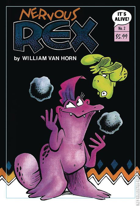 Rexford the T. Rex is back in print after 37 years! This was the first comics work from animator William Van Horn, who would go on to make a name for himself at Disney, drawing Donald Duck and Uncle Scrooge comics! Mild-mannered tyrannosaur Rexford doesn't really fit in with the Jurassic age, as he'd rather just eat oatmeal and hang out with his friends. THIS ISSUE: Rex talks to his psychiatrist and reveals that his issues go all the way back to high school. Stories include: Cut and Print!, At the Psychiatrist's, Under Cover. Featuring a retro cover, along with a variant cover, by original creator William Van Horn!