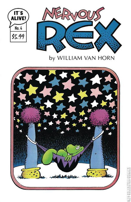 Mild-mannered tyrannosaur Rexford doesn't really fit in with the Jurassic age, as he'd rather just eat oatmeal and hang out with his friends. This Issue: Introducing the backup feature The Pearl of The Universe, featuring Princess Vera (a.k.a. The Pearl of the Universe) and her adoring followers, Strong Arm Stanyan and Slewob the Huge. Discarnate and Datcarnate!; Queen of the Night; Missing End Mystery; The Pearl of the Universe. Featuring a retro cover, along with a variant cover, by original creator William Van Horn!