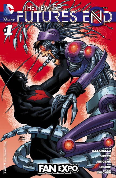 FUTURES END, CHAPTER 1 Five years from now, the DC Universe is reeling from a war with another Earth, leaving the world unprepared for an approaching evil that threatens to destroy the future. Can a time-traveling Batman Beyond help a massive cast of the DCU's finest avert the impending apocalypse? Find out in this new weekly series that will forever alter the direction of The New 52! In this debut issue of The New 52's weekly series, Batman Beyond arrives five years later! Grifter turns against humanity! And a Justice League member DIES!