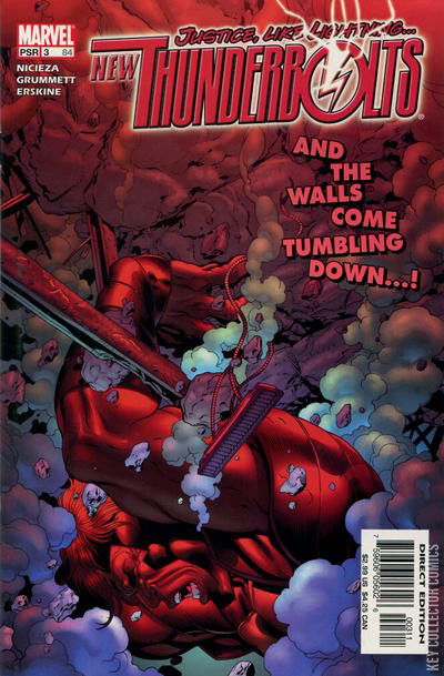 "ONE STEP FORWARD" PART 3 (OF 6) After last month's explosive conclusion, the United Nations building is going to collapse -- unless the new Thunderbolts trapped inside are willing to risk their lives to stop it. Does this new team have the backbone to support the hopes and dreams of an entire city? Guest-starring Spider-Man, who knows a thing or two about heavy burdens! Meanwhile, Fathom 5 strikes again! Baron Strucker gets the point! Our final team member makes a radioactive entrance! And we debut the All-New... no, that would be telling...