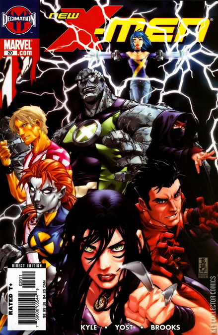 "Childhood's End" Part 1 NEW CREATIVE TEAM! Red-hot X-23 writers Craig Kyle and Chris Yost and rising star Mark Brooks (ULTIMATE SPIDER-MAN ANNUAL, AMAZING FANTASY) take the New X-Men in a bold new direction. Spinning directly out of House of M #8, the New X-Men deal with the changed world. Will X-23 join the team? Will the friendships persevere? Will the kids survive? No one is safe and not everyone will live through this incredible change in the status quo. Brace yourself, the rules have changed and the safety is off.