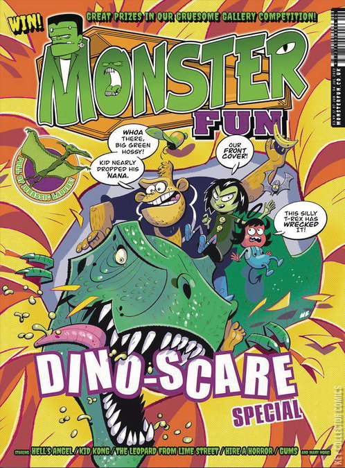 Get ready for a Jurassic classic! This issue is a gargantuan, T-Rex-tickling, smile-o-saurus of a comic book! Yes, the Earth's original giants are ready to go fang-to-face against your favourite monsters, such as Gums, Hell's Angel, Witch Vs Warlock and Kid Kong. Packed with great competitions and games, you won't want to miss this issue. It's dino-mite!