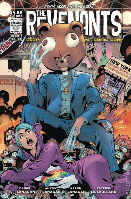 Two Belfast comic book store owners must navigate their way across continents in extreme conditions to the Comic Book Mecca� New York Comic Con! Armed with only their razor-sharp wit and a few priceless store props, they must use their unique set of skills to stop an Armageddon of monstrous proportions the only way they know how - comic book style! With battle lines drawn in a high stakes game of deadly destruction, the store owners must face their greatest challenge yet. Throw in a bear with attitude, some bloodthirsty ghouls and a fanatical scientist, hell-bent on a new world order, the scene is set for murder and mayhem in the city that never sleeps and where you only get one bite of the big apple! Will they be able to stop the mad scientist's nefarious plans, save the world and make it back home? Find out in the most thrilling comic book event of the year, 'The Revenants: Escape From New York�Comic Con'