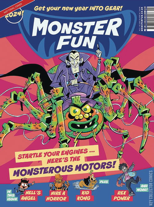Monster Fun is accelerating into the new year with a roar! In the Monstrous Motor issue, our favorite boos and ghouls are bringing the laughs at a tremendous pace. Kid Kong proves he's no Lewis Hamilton when he gets behind the steering wheel; Hell's Angel burns rubber as she races around the underworld; a creepy car gets a makeover in Martha's Monster Make-Up; Kory gets to grips with being bonded to an alien bounty hunter in the second episode of Rex Power; and Peaches and Johnny the Golem seek out the 'Ghost Dog of Tokyo' in Peaches' Creatures. With other strips, including Witch Vs. Warlock, Space Invaded, Hire A Horror, and Gums, plus quiz pages, the Gruesome Gallery, and a new Global Ghoulie, Monster Fun is starting 2024 in pole position!