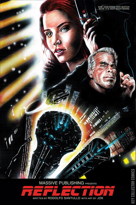 Popular Whatnot Publishing homage artist Tony Kent joins Massive with a tribute to the Blade Runner Director's Cut movie poster. Award-winning novelist and comic writer Rodolfo Santullo, best known for his work with Humanoids and Heavy Metal, joins forces with Argentinian superstar artist JOK (In Hell We Fight, Image Comics) for this giant-sized one shot of suspense and survival. In this near retro-wave future inspired by movies like Blade Runner or Looper with a unique horror twist to it. Detective Lorena Baffo dreams of a horrific murder. As the dream ends she looks up to see herself reflected in glass, with the victim's blood in her hands. Lorena gets assigned to this case and must unravel a mystery involving her own dark side and hidden family legacy.