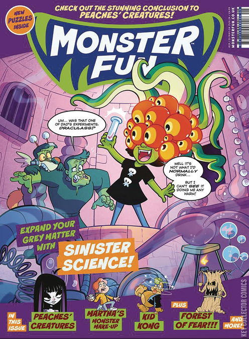 Mirthful May is here and so is the Monster Fun Sinister Science issue! Prepare for your mind to be blown as our roster of not-so-bright, beastly beings expriment with things best left to the experts! Gums, Kid Kong, Hell's Angel, Witch Vs. Warlock, Martha's Monster Make-Up and Space Invaded! bring the winning, comedic formula, while Rex Power provides some explosive action! Adventure is also the order of the day in Peaches' Creatures, which reaches its dramatic conclusion. And finally, we take you on a visit to the Forest of Fear! Enter if you dare!