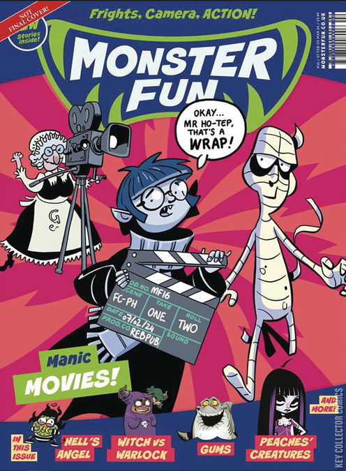 Frights, Camera, action! Welcome to an issue full of celluloid scares in our film-tastic Manic Movies issue! Nan's past on the silver screen comes back to haunt her in Kid Kong; Drudge makes a superhero movie with the 'help' of the Mildew Manor household in Frankencritter; a leading shark needs good teeth in Gums; a scary movie comes to life in Martha's Monster Make-Up; Rex faces off against demon foxes in the third episode of Rex Power; while, with Agent Daffodil hot on her heels, Peaches finds the 'Vampire Cats of Budapest' in Peaches' Creatures.