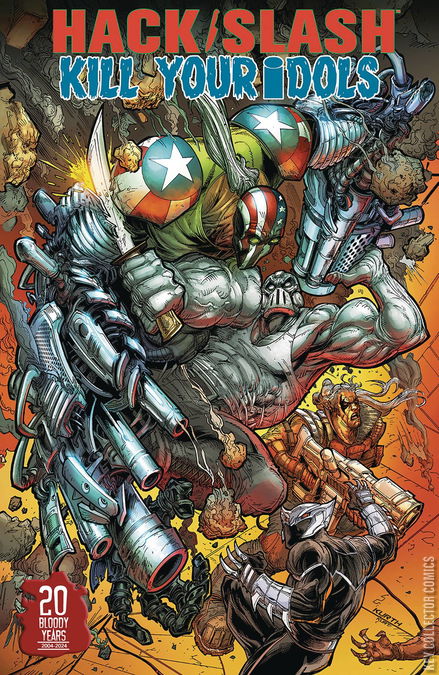 Slasher hunters Cassie Hack and Vlad are back with a one-shot collecting the all-new 'KILL YOUR IDOLS' serial from the IMAGE! 30TH ANNIVERSARY ANTHOLOGY series! When Cassie and Vlad encounter an unusual slasher, they're led to the front door of cyborg former super soldier Superpatriot! Now, the horror hunters are drawn into a race against time alongside a lost super-team in a tour of the gritty underbelly of the Image Universe! Featuring art from the original HACK/SLASH creative team, STEFANO CASELLI & TIM SEELEY, just in time to celebrate the 20th anniversary of HACK/SLASH in 2024!