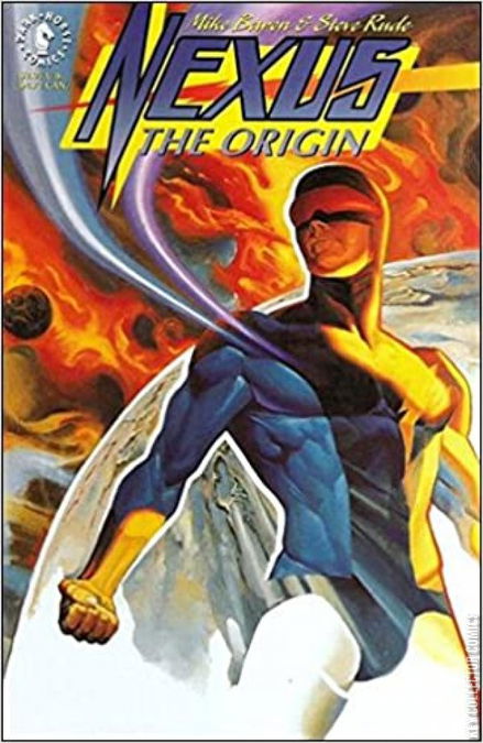Nexus is a being with almost unlimited power, hailed as a galactic hero for his role in freeing oppressed peoples on countless worlds. In his “civilian” life he is Horatio Hellpop, son of Theodore Hellpop and Doñita Marlis Esperanza. He was born on the planet Vradic where his father was the local ruler for Sov Empire. In time, the populace rose up and was on the brink of overthrowing Sov rule on Vradic. So, acting under orders of the Supreme Sov, Hellpop took his wife and child into a spaceship with him and ordered the entire planet destroyed. Afterward, he considered himself unfit for human civilization and set his ship’s course for the heart of a black hole. He intended to kill himself, but instead encountered a strange new world which would shape his son into an instrument of justice.