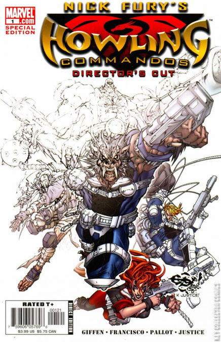 "Creatures on the Loose!" When the supernatural proves too difficult and dangerous for SHIELD, Nick Fury fights fire with fire! Introducing the top secret weapon in the battle against other worldly threats, the HOWLING COMMANDOS, a special covert “shock and awe” unit made up of Marvel’s greatest horror characters. Join Warwolf, the Living Mummy, Frankenstein's clone, the Zombie John Doe, Vampire by Night and a whole army of the macabre in this fantastic first issue! Note: Abominable Snowman, Blade, Brother Voodoo, Glob, Gorgolla, Hellstorm, John Jameson, Manphibian, Satana and Wherewolf by Night only appear in the Director's Cut Edition as 'inactive members' of the squad.