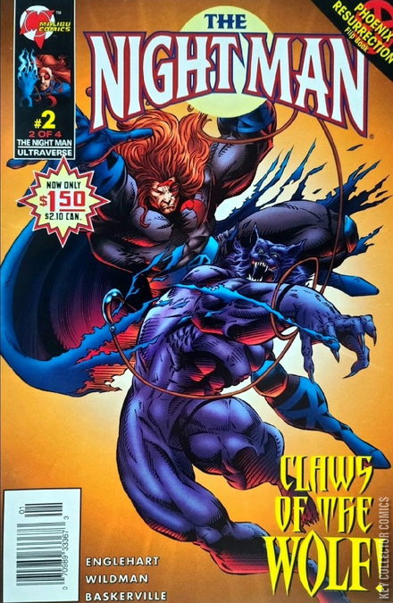 "The wilder shore" The Night Man takes on the Wolf and rescues a couple friends while Rasputin escapes. In the Phoenix Resurrection flip book, the Night Man makes contact with Hellstorm who warns him about the coming multi-dimensional threat of the Phoenix.