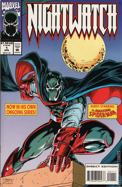 Web Of Spider-Man supporting character, Nightwatch, debuts in his first true clash with Spider-Man, and tackling a major new villian! After ten years of self-imposed exile, Nightwatch returns to New Yorkt o complete the cycle of his catastrophic legacy in this new monthly series! The mysterious Nightwatch, covered in perpetual darkness by his powerful cosume, seeks answers to his origin and the loss of his long-lost love. Ten years ago, Dr. Kevin Trench mysteriously came to posses the powerful Nightwatch costume. Failing to save his love from a plane hijack, Dr. Trench hid from the world on a desolate island. His road to discovery begins with a search for the truth to his past, which happens to be our future! Standing in his way is a vicious new enemy, hellbent on keeping him from discovering the facts! Will the appearance of Spider-Man in the first issue help Nightwatch succeed, or will the truth remain hidden forever?