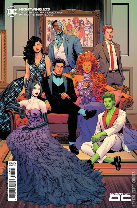 Who is the Grinning Man, who's always grinning no matter what he's doing, even when he's murdering people, and what kind of deal did he make with Neron? Nightwing and the Titans better figure that out soon before they lose one of their team members... Then, in the backup, Nightwing continues his lessons mentoring Jon Kent, a.k.a. Superman, and this time it's about using your detective skills instead of your fists.