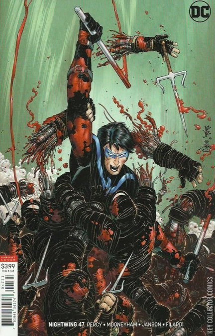 THE BLEEDING EDGE, FINALE Dick Grayson may want to consider a new career in cyber-security, because the major tech upgrades coming to Blüdhaven mean deadly danger for everyone in the city. Nightwing battles the mysterious tech mogul Willem Cloke, who it turns out is just a front man for the real threat—the organization known only as the Dark Web! Time to change those passwords, Blüdhaven!