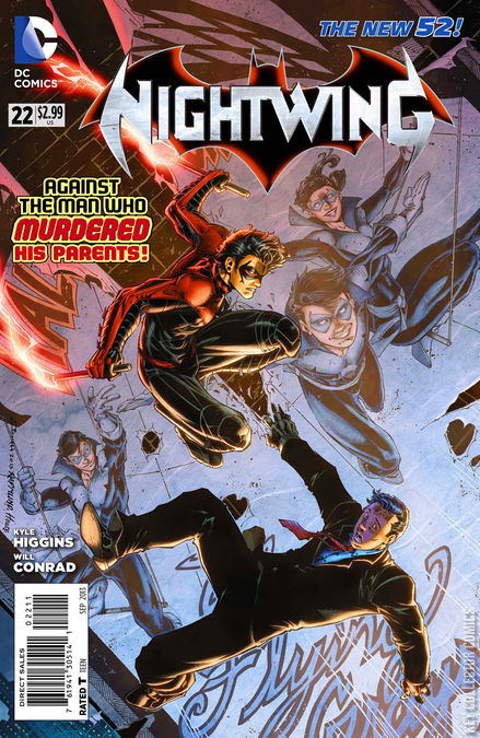 SHOWTIME In Chicago, Nightwing's roommate Michael, a reporter, has been given footage by a police detective who wants him to run a story focusing on the fact that the masked vigilante Nightwing was seen working together with the known criminal, the Prankster. Thought Michael is reluctant to cheat this way, he is not willing to give up the opportunity to become a success. Meanwhile, Nightwing surprises the Mayor in his office in order to question him as to why he's protecting Tony Zucco, who is now going by the name Billy Lester. Though it could be a coincidence that Zucco and the Mayor's brother were in prison at the same time, or that he is now working for the mayor under an alias, Nightwing is not inclined to believe that it is. Even so, he assures the Mayor that he is not threatening, but promising, because so long as the Mayor hides Zucco from him, the longer Nightwing will stay in town and spend that time looking into the Mayor himself. Surreptitiously, he sneaks a bug onto the underside of the mayor's desk, and then disappears before the Mayor can utter a response. Later, given that the Prankster hacked into his suit's electronics the previous night, Dick considers that he should take precautions against it happening again, and hopes he can convince his new roommate Joey - a cyber security specialist - to help. Unfortunately, the coding of his suit is an entirely different type of work than what she can do. However, she does suggest that if he wants to avoid having his "phone" hacked, he should just turn it off. Meanwhile, at the offices of the Chicago Times, Michael's bosses are elated that the video of two masks at once that he brought them has gone viral. Despite it being a blurry video, they think he will go far - if he can pull it off again. Elsewhere, the Prankster has gathered himself an army of followers who are sympathetic to his cause. In Lake Geneva, Wisconsin, Zucco is living his life as Billy Lester, a father and husband. When his son Brian takes another child's toy, he makes the boy return it, explaining that when adults make mistakes, they have to take responsibility for it. Despite promising they could stay at the pool for a while yet, he spots a news report of the two vigilantes warring in Chicago, and hurriedly urges his family to leave, because he needs to call Mayor Cole about something. After eight hours of listening to the bug he planted in the Mayor's office, Dick finally hears Zucco calling in to complain of Nightwing hunting him. Still, all he can learn from the call is that Zucco is worried. Suddenly, Dick is distracted by the sight of the Prankster's face on every screen in the city. The Prankster claims that the Mayor is not who he appears to be, and has been harbouring wanted murderer Tony Zucco for three years. Additionally, the Mayor has embezzled nearly 52 million dollars from the city coffers. In order to convince the Mayor to pay back that money, he threatens that he will make the people of Chicago suffer until he does. To illustrate this, he derails a subway train, and hacks all of the police cruisers in the city, preventing them from responding to the disaster. Horrified, Nightwing makes his way to the site of the crash, knowing that this is all his fault. If he had just let the police catch the Prankster, he would not have been free to commit these crimes. He meets resistance at the scene from the Prankster's army, and attempts to beat their leader's whereabouts out of them. Unfortunately, he tells them all different things, so none of them can give him a solid answer. Meanwhile, the Prankster has taken a room full of policemen hostage, tying each one to the trigger of an automatic weapon, so that if they move, they will die. He explains that all of this carnage is merely in keeping with the precedent that the Mayor set: profiting while the innocent suffer. He explains that if the Mayor pays back the money he took, they will all live. If not, they will live for as long as they can stay still.