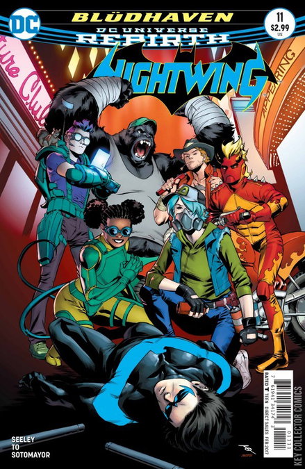 BL ÜDHAVEN PART TWO Nightwing continues his adventures in Blüdhaven, facing a ancient foe of Batman and Robin, the Defacer. First thinking she's up to something, but discovers that she runs a support group of former super-criminals from Gotham. He decides to help them by finding out if Gorilla Grimm really is innocent. He investigates in the city and comes back at night to Shawn Tsang (Defacer) convinced of Grimm's innocence. While he talks with Shawn about helping the Run-Offs and beginning some kind of romance, the Police arrives to arrest her. Telling Nightwing to stay out of their business and go back to Gotham, accusing him of being more of an ad campaign than a hero.