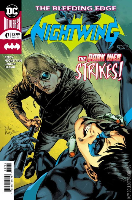 THE BLEEDING EDGE, FINALE Dick Grayson may want to consider a new career in cyber-security, because the major tech upgrades coming to Blüdhaven mean deadly danger for everyone in the city. Nightwing battles the mysterious tech mogul Willem Cloke, who it turns out is just a front man for the real threat—the organization known only as the Dark Web! Time to change those passwords, Blüdhaven!