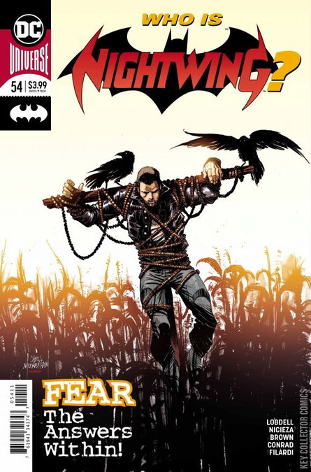 KNIGHT TERRORS, PART FIVE: STEPPING INTO AIR A scarred Dick Grayson has given up his vigilante persona in favor a normal existence. A new job, new friends, new life—all are compromised when a safehouse full of old Nightwing gear falls into the wrong hands. Confronted with a past he’s worked so desperately to escape, will Dick Grayson answer the challenge by becoming Nightwing…or something else? The newest chapter in the evolution of Dick Grayson reaches its next level!