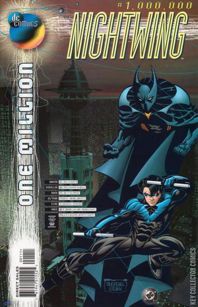THE ANACHRONISM Nightwing meets the Batman of the 853rd Century. Batman fights Nightwing because out of "custom" as he had studied on how masked lawmen of this era meet and challenge one another to test their skills, much to Nightwing's chagrin. Fortunately, the Datarangs that Batman uses against Nightwing are harmless and has them place a mark on his genetic code to allow Batman from losing track of Nightwing. The two heroes travel through the ruins of post-Cataclysm Gotham while they learned from one another. The duo then stop Slyfox and Riddler's henchmen Query and Echo (who are posing as construction workers) in the middle of a robbery. After dealing with the criminals, Nightwing and Batman discuss about the Hourman Virus in which the latter has the means to finding a cure, but he lacks the necessary equipment. Nightwing knows where he can find them and leads Batman to the Batcave.
