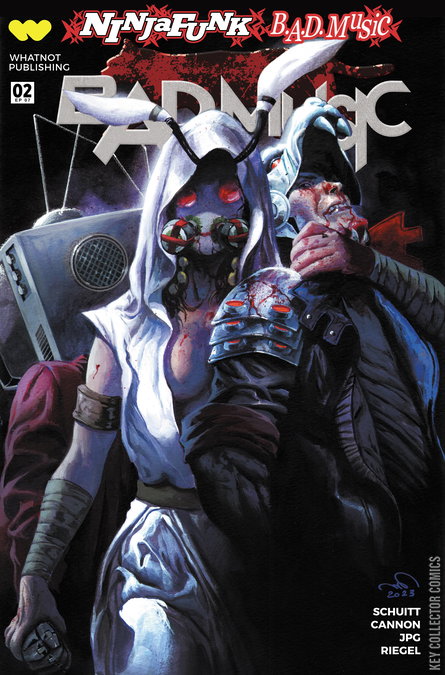 Cover by Humam Qutab who delivers a painterly homage to Batman: Harley Quinn. B.B. wreaks havoc on the Queen's henchmen, the 88 Suits, Mcfly following the trail of destruction towards the Queen herself. All the while, BB repeats a seemingly senseless question to her victims, never satisfied with their answer. Back at the Ninja Funk dojo, Wolfgang has left Lazerwolf alone to lament his inability to help, but an unexpected visitor from his past brings a potent distraction in the form of a challenge. Will the appearance of this new frequency bender prove to be a blessing or a curse?