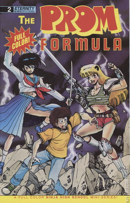 Prom Pom-Pom - Written by Ben Dunn. Art by Ben Dunn and Robert DeJesus. Covers by Ben Dunn. A full color Ninja High School mini-series! The Zardons' youth potion causes chaos at the prom. Characters in this issue: Ichi-Kun; Jeremy Feeple; Asrial; Leeanna; Lendo; Sammi; Phrank; Mickey; Howard; Professor Steamhead; Ms. Celande; Dog Supreme. 24 pages, full color.