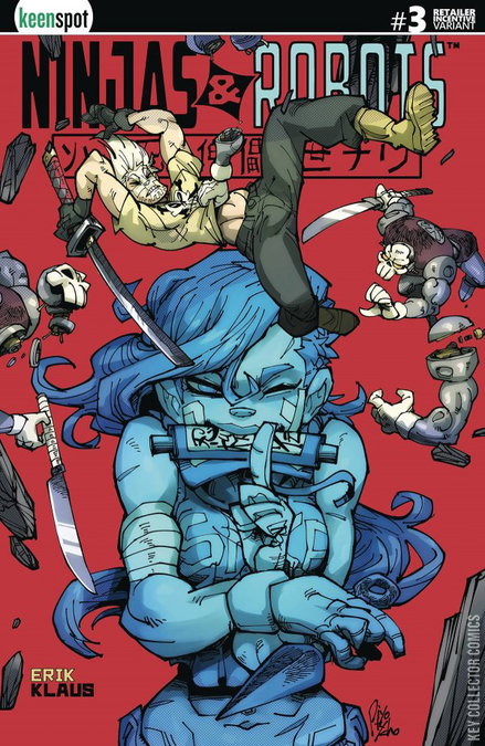 Manga meets punk rock as Kubert School alum Erik Klaus returns to amp up the epic ninja action for the third installment of sleeper hit Ninjas & Robots! Yuki's friends finally catch up with her, but our band of heroes must fight their biggest obstacle yet, the 'Dead-Fall'! Super Ninja strikes and Smoke Grenades are on the menu! Don't miss the wrapaound cover Erik Klaus, plus variants by Damien Scott, Jamie Jones, and a special retailer variant by the amazing Piyotycho!