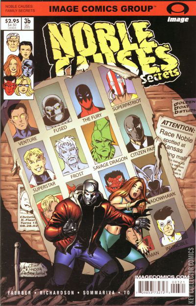 It's guest-stars galore as Rusty goes on a rampage, interrogating various Image super-heroes who he thinks may have gotten Zephyr pregnant! Meanwhile, Doc makes a startling discovery of his own, and Liz has a confrontation with the person who leaked the latest Noble scandal to the press. Australian artist Jon Sommariva illustrates the back-up story, which provides a glimpse into Frost's troubled childhood.