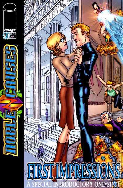 You've asked us and asked us, "When is Image going to do super-hero books again?" Well, be careful what you wish for. This September, Image Comics proudly presents NOBLE CAUSES. We invite you to see a new side to the world's most famous super-heroes, a side that they don't want you to see. The Nobles are just like your family, that is if you family were rich, beautiful, and super-powered. NOBLE CAUSES is true labor of love written by Jay Faerber, the current writer of Titans from DC Comics, and a regular contributor to the quarterly anthology series, Gen-Active. No stranger to intriguing character driven stories and interpersonal relationships, Jay's past work includes stints on Green Lantern, Superboy, Generation X, New Warriors, and the X-Men. He and an incredible band of artistic jump starts have created a world where drama and power play out together in surprising new ways. It's the Fantastic Four meets the Kennedys. It's a book so entertaining that you'll punch yourself silly for missing. NOBLE CAUSES: FIRST IMPRESSIONS is a completely self-contained introduction to this new, on-going series. NOBLE CAUSES #1 will be released later this winter after we have several more issues inventoried and ready to print. Super-heroes? Yes. Role models? No. NOBLE CAUSES: FIRST IMPRESSIONS, a big first step into an even bigger, compelling new world. A self-contained introductory one-shot to the upcoming ongoing series. Every girl thinks her boyfriend is a catch, but Georgetown bookseller Liz Donnelly's got bragging rights --she's dating Dash Noble, the famous super-hero with the quick smile and quicker legs. She and Dash have reached that special place in their relationship where he wants her to meet his family... and what a family it is! The Nobles are the planet's premiere super-heroes, worshipped and adored the world over, but there's a side to them that the public doesn't see... a side they keep hidden. Join Liz as she becomes the first person to go behind closed doors and...